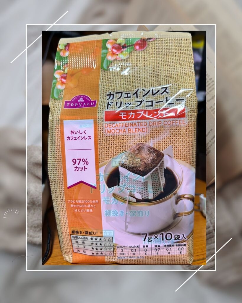 コーヒー好き現役介護士が深夜でも飲めるカフェインレスコーヒーを求めてスーパーへ。今回はイオンのプライベートブランド、トップバリュ「カフェインレスドリップコーヒー モカブレンド」をご紹介します。夜勤中、普段の就寝前に飲みたいと思っている方の参考になれば嬉しいです。