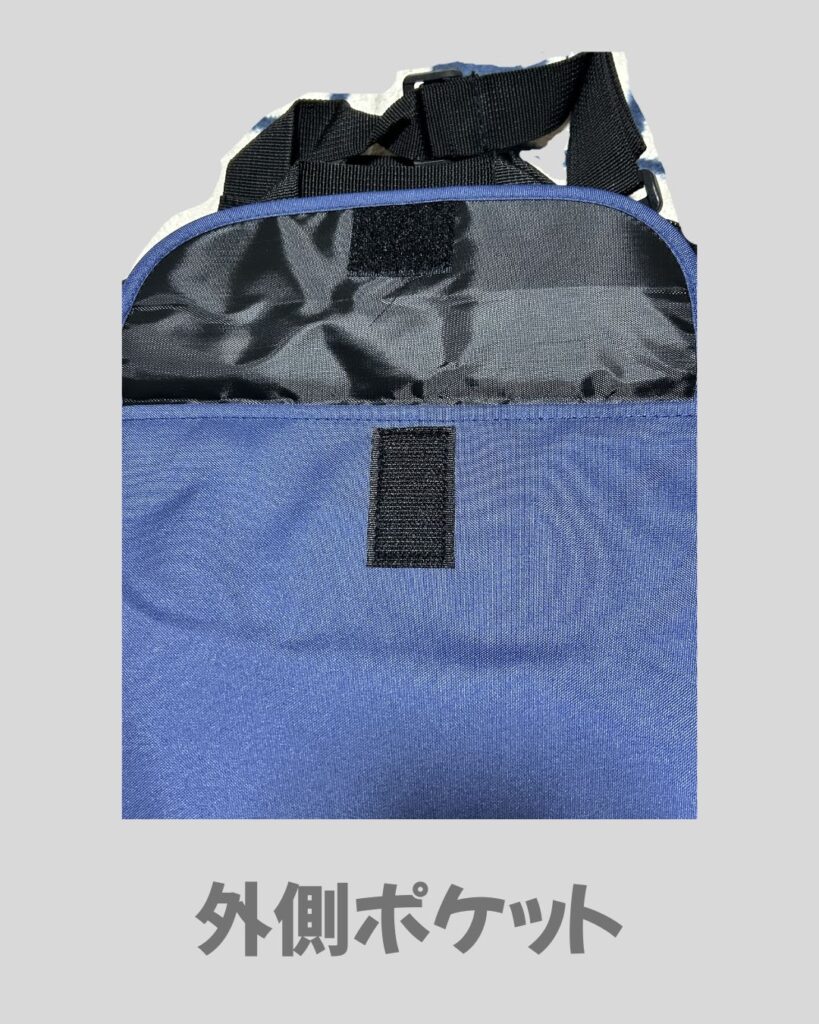 ・マジックテープで止めるタイプの外ポケットが一つある